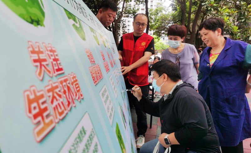 共创“无废社区”群众签名。图片来源:武汉市硚口区委文明办