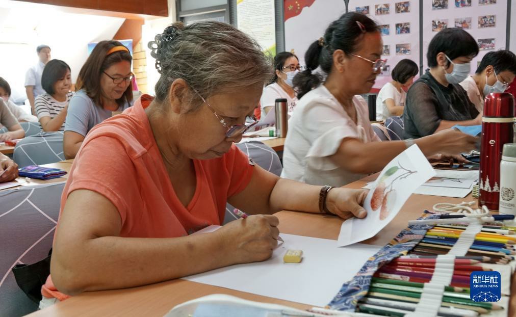 北京市朝阳区劲松街道首城社区的居民在社区新利体育在线官网首页入口所参加彩铅绘画班(9月13日摄)。