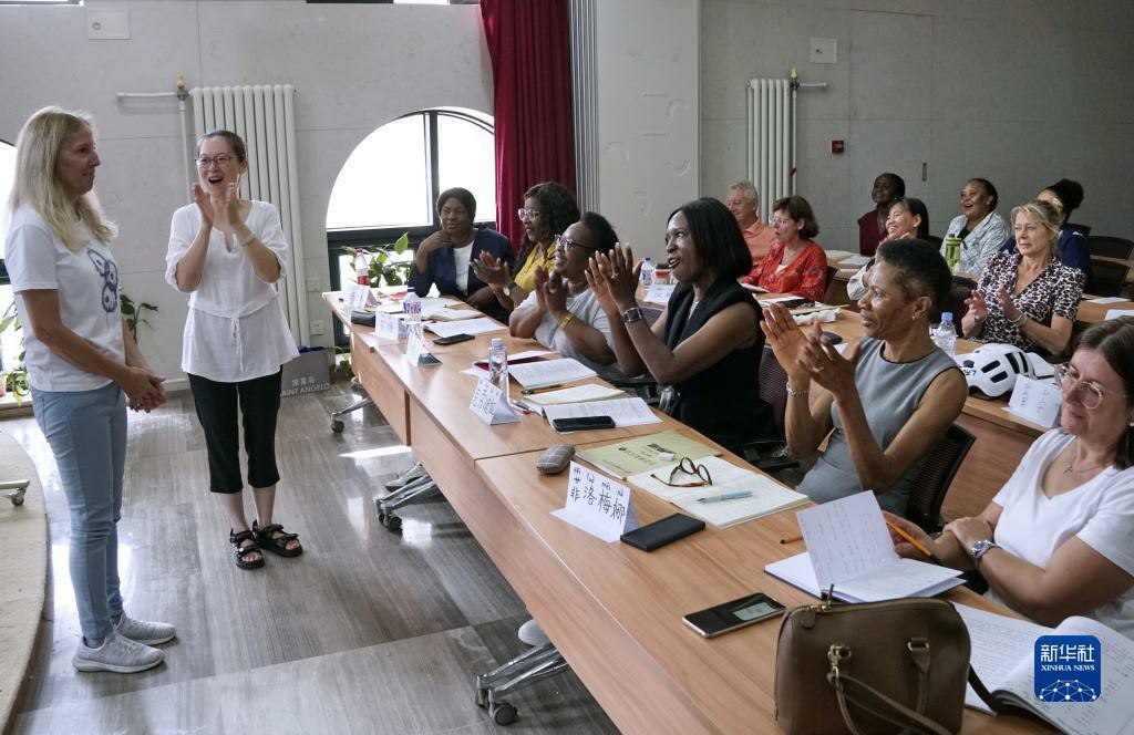 外籍居民在北京市朝阳区麦子店街道的社区新利体育在线官网首页入口所参加汉语培训班(9月11日摄)。