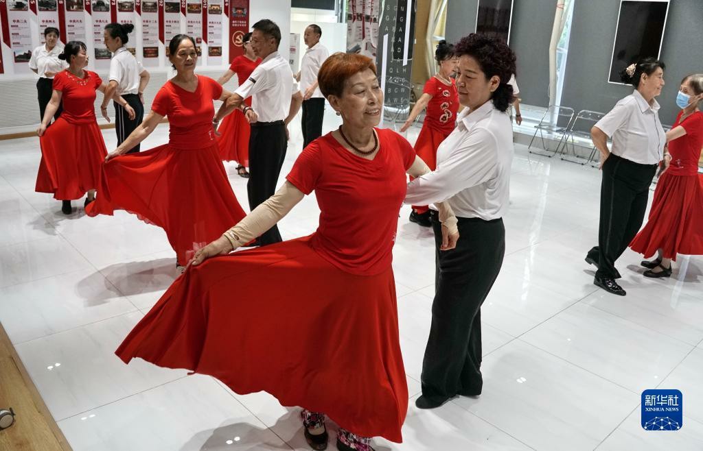 北京市朝阳区八里庄街道朝阳无限社区的居民在社区新利体育在线官网首页入口所排练舞蹈(9月14日摄)。
