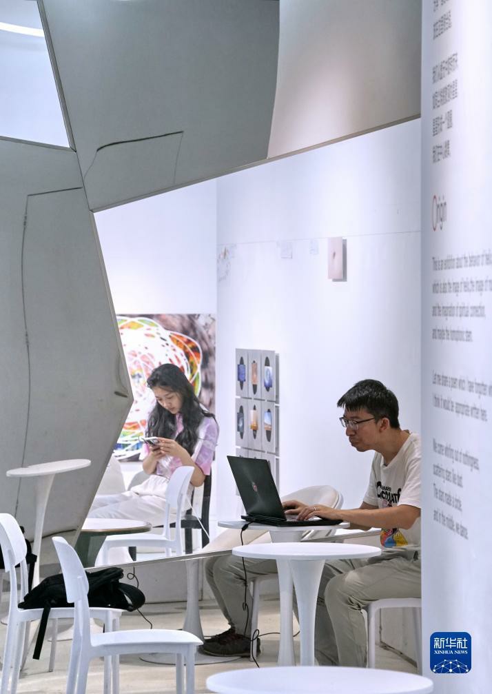 居民在北京市朝阳区一家商场内的活动空间阅读(9月14日摄)。