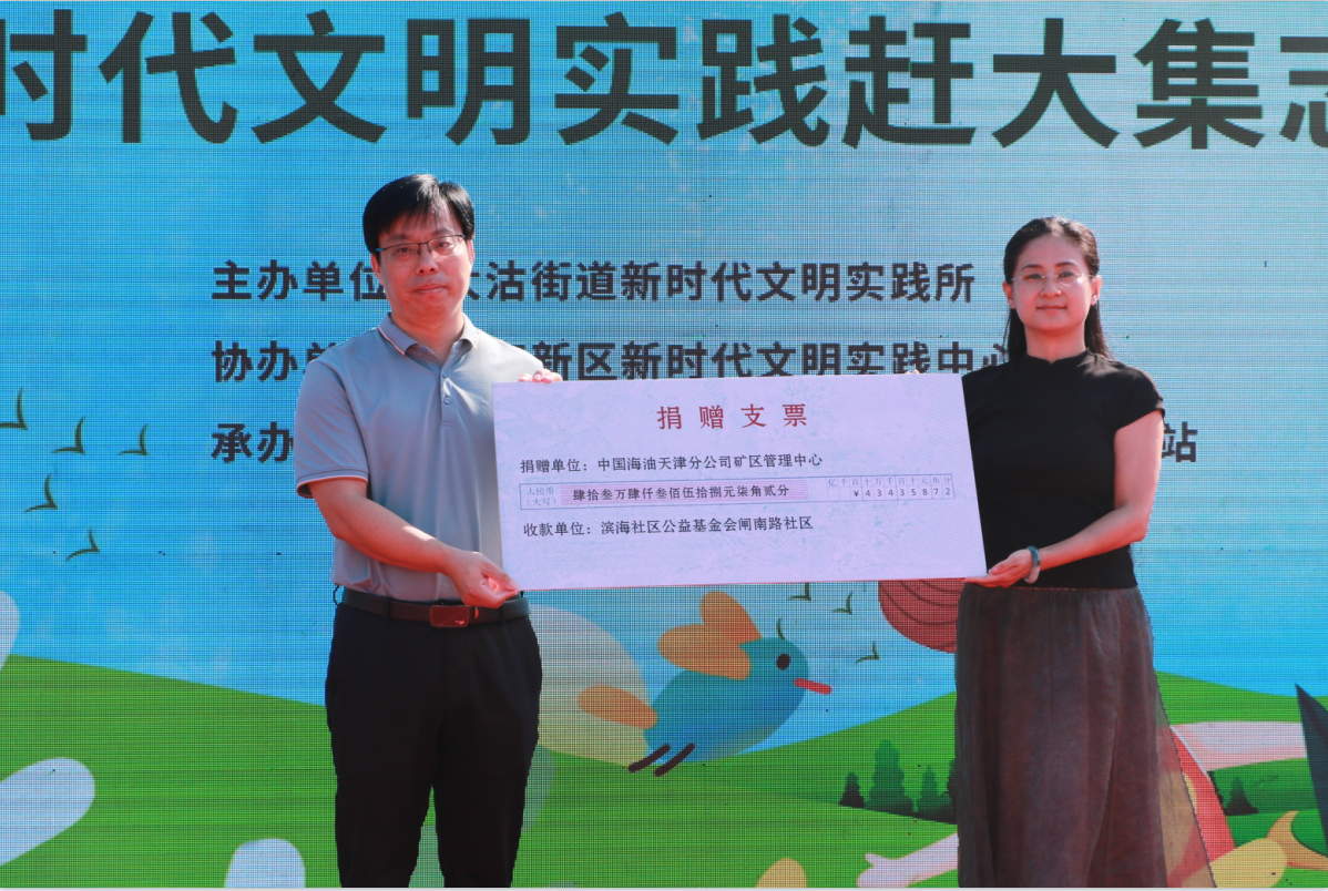 现场,作为共建单位,中国海油天津分公司矿区管理中心也向大沽街道闸南路社区注入公益资金,以实际行动支持社区发展。