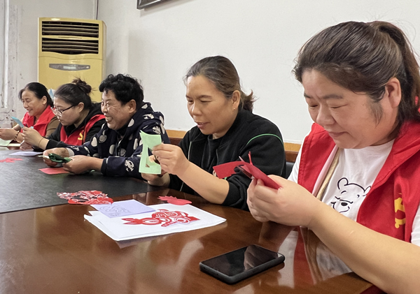 “剪纸的纹样该怎么处理?怎么使用直刀法?怎么把握技巧特点?”社区居民们跟随剪纸老师魏娟的细致讲解,很快掌握了剪纸的基本技巧,经过一个多小时的努力,一张张剪纸作品跃然纸上。在悠闲的晚间时光,大家欢聚一堂,在和谐、欢乐的氛围中做手工、听故事,共度美好时光。