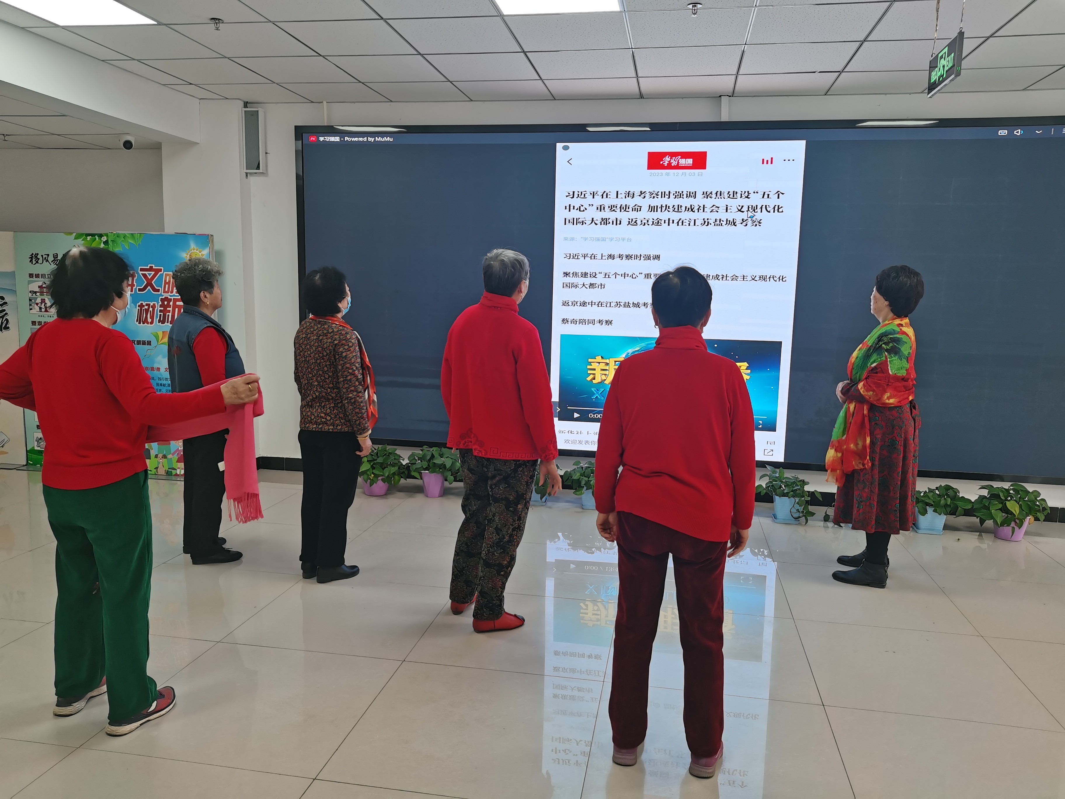线上云端,“大屏小屏”比学习。“‘学习强国’内容很全面,有习近平总书记的重要讲话,还有历史知识等,您想知道的国家大事、政策理论都能在“学习强国”平台上看到,还可以语音播报,不用担心看不清字啦……”在永和社区办事大厅设立的大电子屏前,社区干部正在给前来办事的群众讲解“学习强国”上的各类学习功能。
