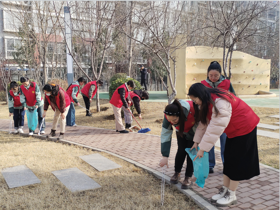 走访结束后,党员志愿者们来到慈善公园,手持钳子、垃圾袋,分工合作、互相配合,分别对绿化带内落叶、纸屑、烟头、塑料袋等垃圾进行清理,同时提醒群众将生活垃圾分类投入垃圾桶,爱护身边环境,共建美丽家园。