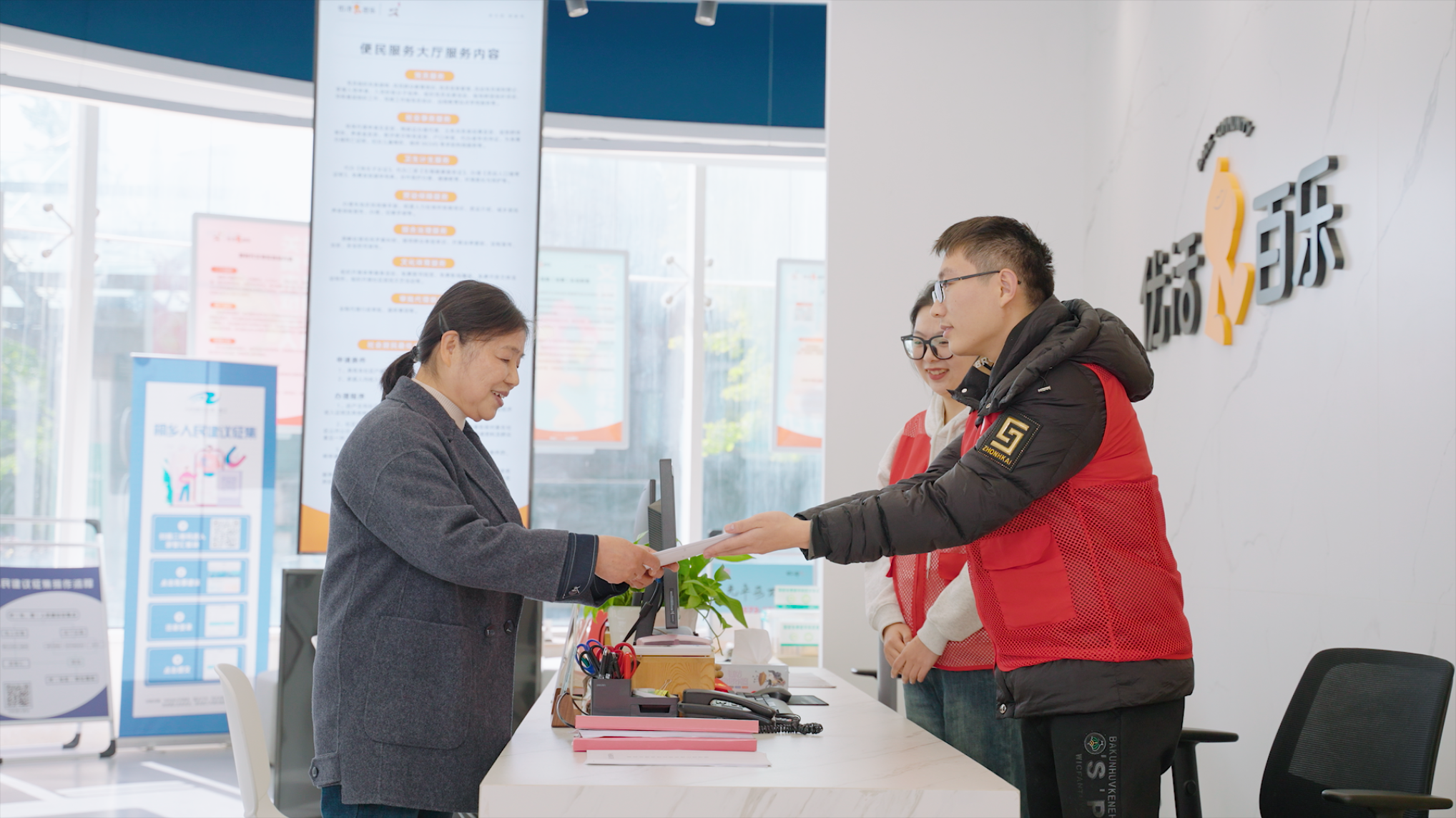 百乐社区以党群服务中心蝶变跃升为契机,打造社区服务综合体,设有百姓健身房、居民会客厅、居家养老服务照料中心、多功能影音厅等。社区通过正时服务、延时服务、预约服务和线上服务,打造党建的全时服务。打造了桐乡首批示范型居民会客厅,从原来的“面对面”对话式交流到“开放式、肩并肩”的“零距离”服务模式。消除了社区干部和居民之间的壁垒,拉近距离,提高了办事效率。同时,居民除了正常工作时间来办理事务之外,还可以通过电话、微信等进行服务预约,此外,还提供3小时的错时服务,满足居民对便捷社区服务的需求。中心配备了便民药箱,满足居民的一些便民需求。设立骑士加油站、为外卖小哥、快递小哥等新就业群体提供休憩、手机充电、免费饮用水、红色代办等服务事项。我们以居民日常生活需求为导向,为居民提供精细化、全面化的服务,由社区志愿团队领办打造“微·便民、微·学乐、微·睦邻、微·援助”社区四大服务微项目,打造相应的“便民服务圈”“全龄学习圈”“睦邻生活圈”及“公益伙伴圈”,让居民在家门口就能享受到优质便民的服务。