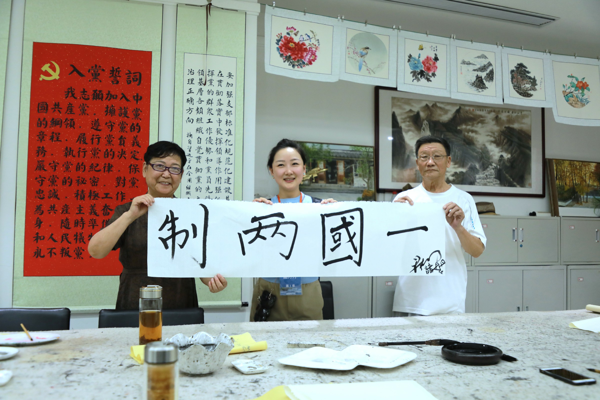 文化共通,共写“中华河山” 李女士等人在百步亭社区书画协会成员的指导下,现场留下“一国两制”、“中华”、“河山”等书法,并拍照留念。“我写得不够好,还请你们多多指点。”华女士、薛女士与书画协会成员交流心得体会。“这次活动是一次很好的机会,能在一起沟通交流,大家说一样的话、写一样的字,本来就是一家人。”(作者:陕俞彤 陈桵)