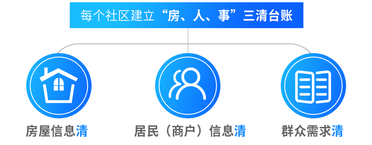 建立一本“房、人、事”三清台账。开展“走百家门、知百家情、解百家忧、暖百家心”活动,实行“一走、二看、三听、四聊、五议、六办、七回头”的“七要诀”工作法,每个社区建立“房、人、事”三清台账,即房屋信息清、居民(商户)信息清、群众需求清。社区工作者联合网格员、志愿者等常态化入户排查走访,全面摸清底数,并动态更新,让信息在社区内收集、问题在社区内流转、服务在社区内开展、诉求在社区内解决。