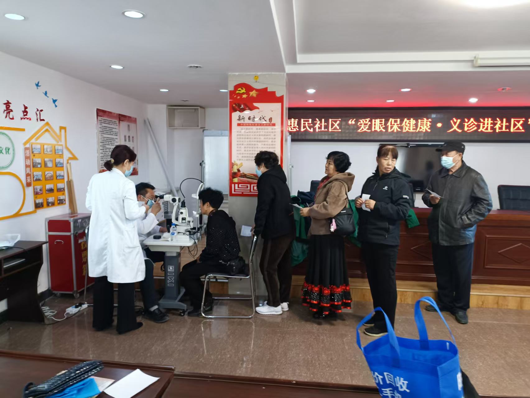 为增强居民身体素质,普及健康知识,传播健康生活理念,惠民社区定期举办义诊志愿服务活动,让辖区居民在家门口享受更贴心、更便捷的医疗服务。义诊包括各种眼科疾病检查、健康检查、免费按摩、用药指导等项目,并对常见的老年病从生活方式、用药规范、营养保健等方面提出针对性的指导意见,同时,为居民普及疾病治疗方法和预防保健等知识,增强疾病早预防、早诊治意识。共开展送医送药、健康义诊等服务7次。