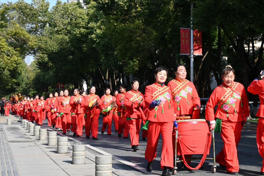 上午8点58分,随着三声气势宏大的开道锣响,100人的腰鼓表演拉开活动序幕。表演者们身着绛红战袄,跳跃间鼓点如疾风骤雨,红绸共舞的英姿令观众齐声喝彩。