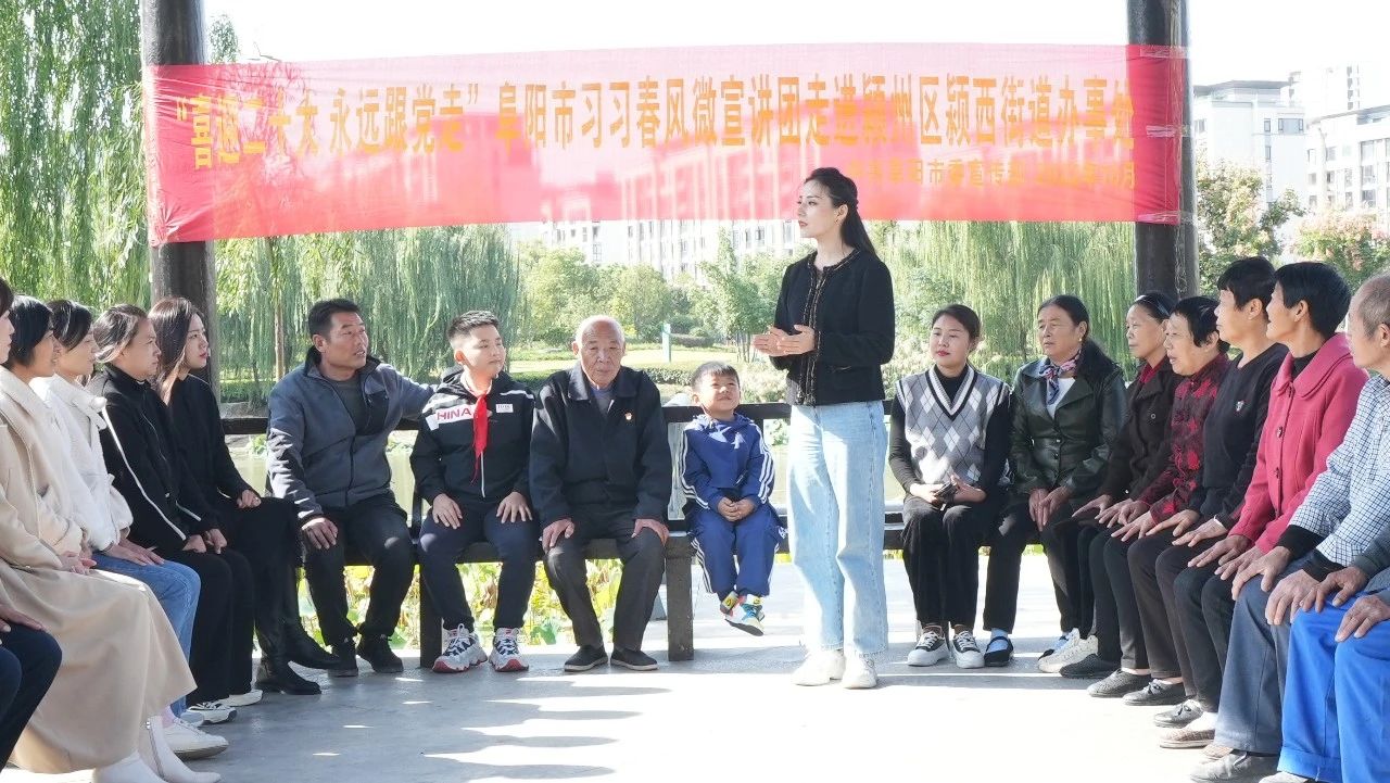 2022年10月,宣讲员胡晓岚走进安徽省阜阳市颍州区颍西街道办事处,为居民带来“喜迎二十大 永远跟党走”主题宣讲。