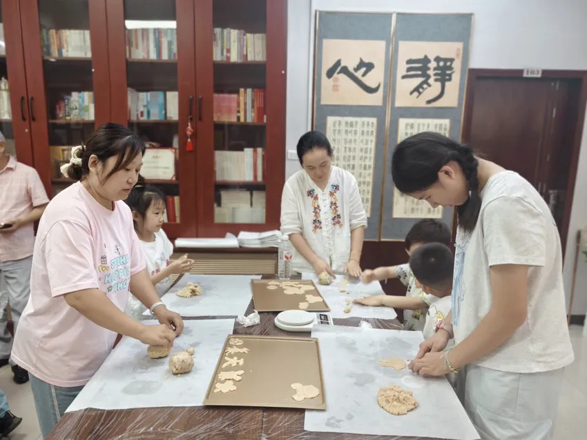 面粉、奶粉、黄油按比例添加融合,一盘盘金灿灿、香喷喷的“小蝴蝶”、“小螃蟹”从烤箱中取出。百步亭社区科协志愿者郝君梅携手景兰苑“妈妈力”志愿服务队,带领苑区亲子家庭一同动手制作饼干,共享烘焙乐趣,在协作中增进亲子交流,体会合作与分享的快乐。