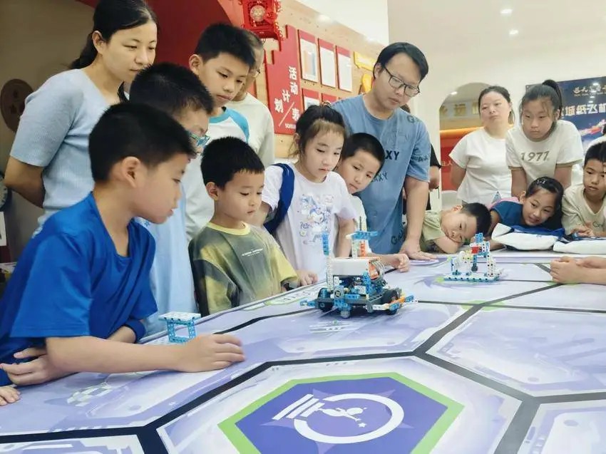 “妈妈你看,我画的小猫会自己眨眼睛!”7月16日,青少年机器人科普教育企业将编程、机器人、无人机等特色课程带进现代城四区党群服务驿站科普角,通过“AI绘画交互”、智能机器人任务赛、无人机操控三个环节,为参与课程的暑托班学员解锁“AI小画家”、“智能工程师”、“无人机指挥官”三重身份,体验智慧科技的魅力。